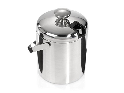 Coole Drinks für heiße Abende! Mit diesem schicken Eiswürfelbehälter sorgen Sie auf Partys und jeder festlichen Tafel für langanhaltenden Genuss kalter Getränke. Neben dem abnehmbaren Deckel und der Zange sorgt ein beweglicher Henkelgriff aus Edelstahl für eine tolle Handhabung beim Servieren. Der Edelstahlbehälter eignet sich ideal für die Bereitstellung von Eiswürfeln und „crushed ice“ über einen längeren Zeitraum, denn durch das mitgelieferte Abtropfsieb wird der direkte Kontakt mit dem Tauwasser vermieden. Dank des hochwertigen Materials und dem tollen Design ist dieser Eiswürfelbehälter definitiv ein Hingucker bei Tisch und in jeder Bar.